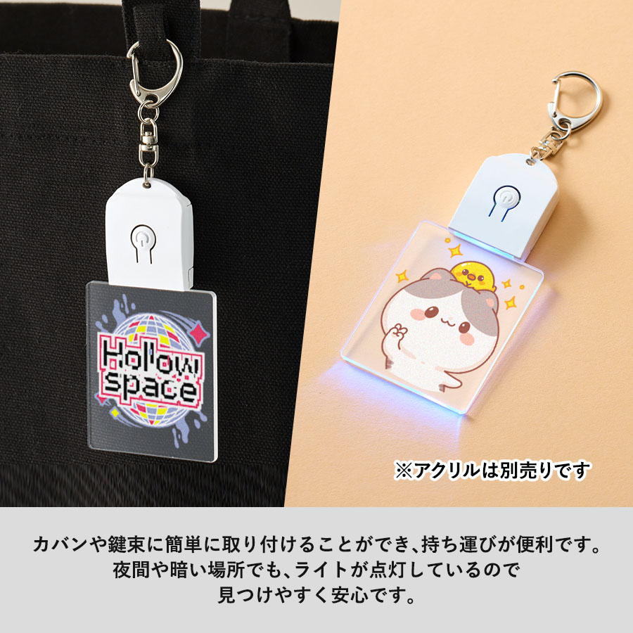 カバンに付けていつでも持ち歩くことができる、光るキーホルダーとしてお楽しみいただけます。