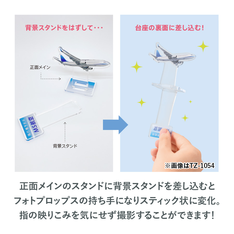 通常は背景付きの立体的なアクスタ、撮影時はフォトプロップスと、2way仕様でつかうことができるアクスタです。