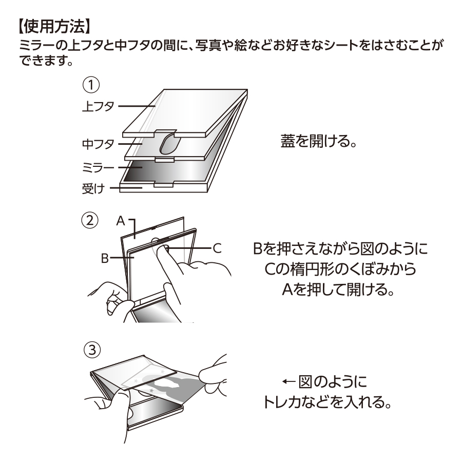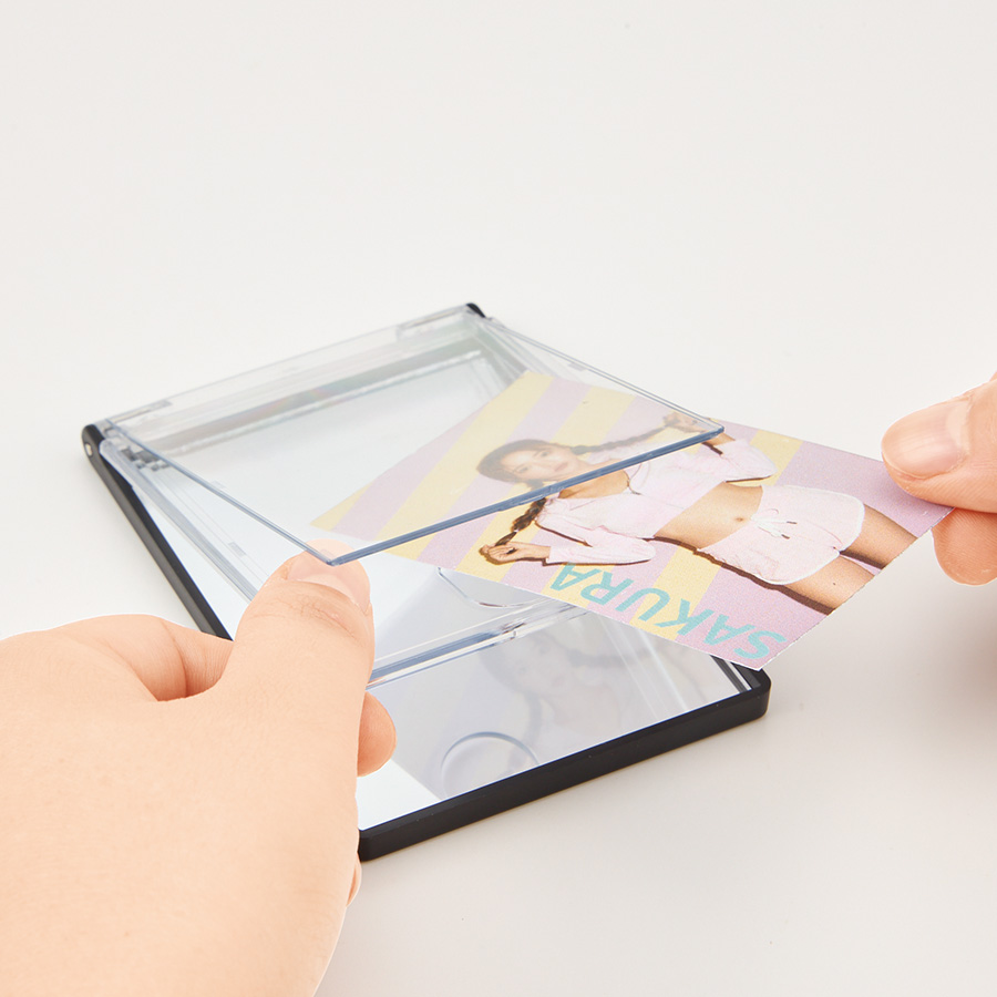 フタ部分にトレカをセットすることで、オリジナルミラーが完成します。