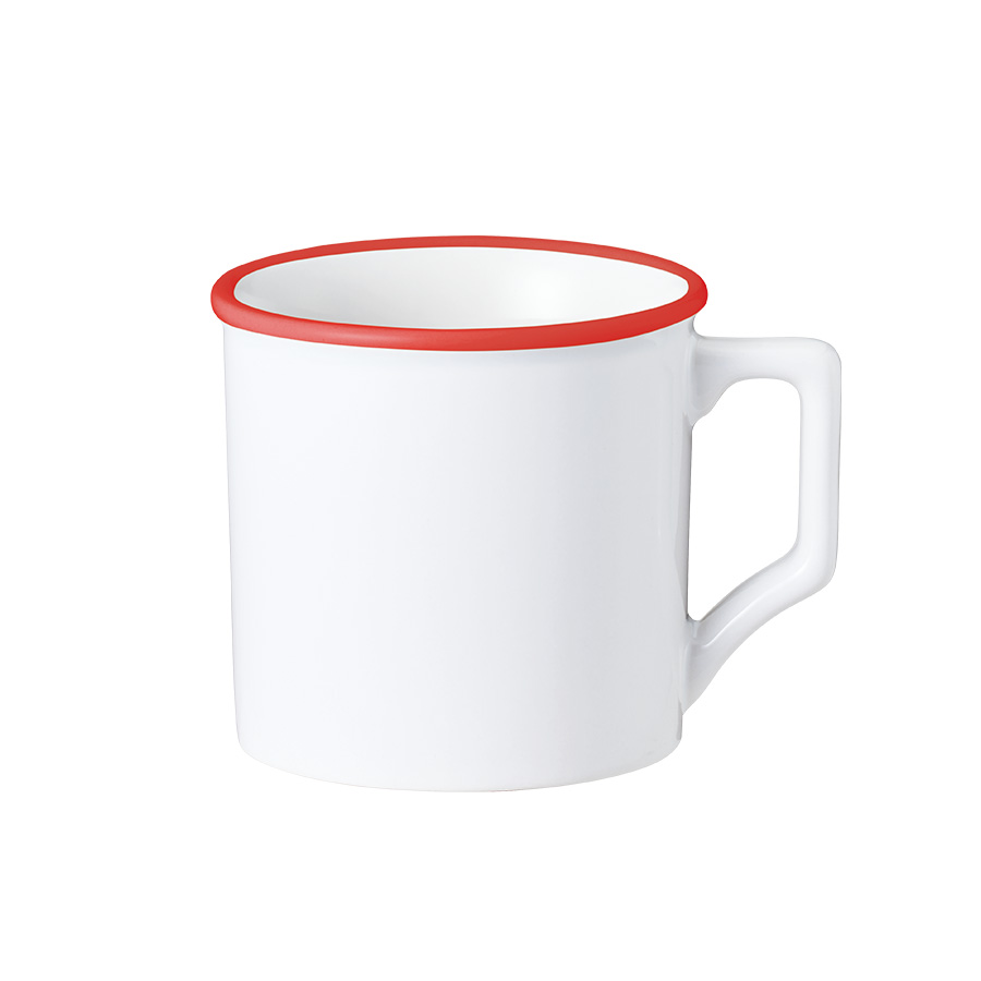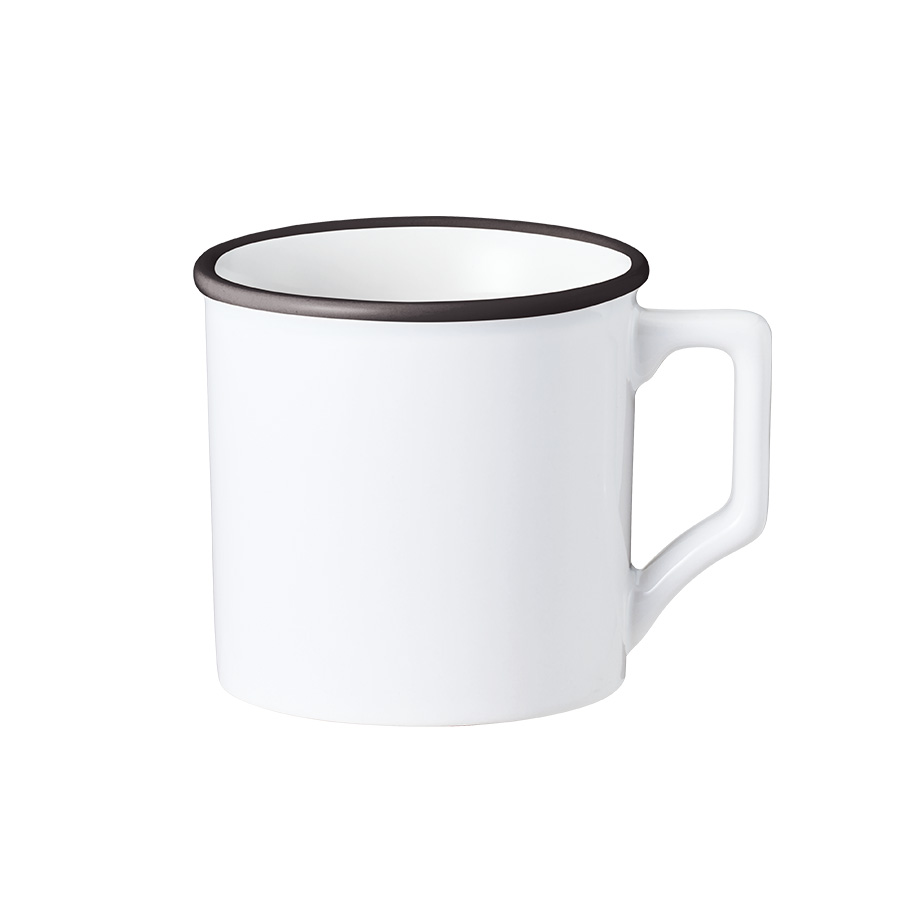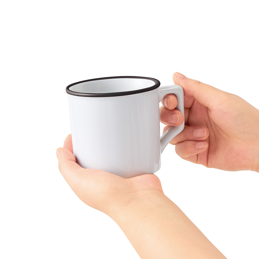口元をふっくらとさせた優しげなデザインはホーロー製のマグカップの定番ですが、