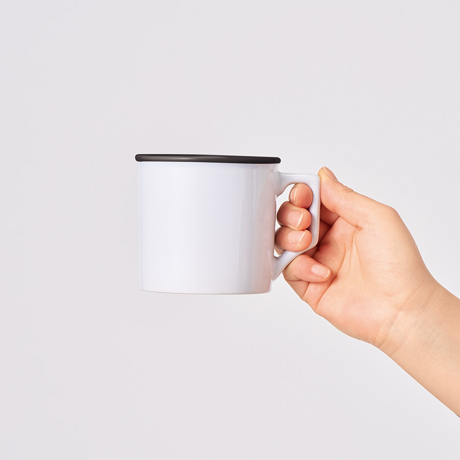 マークレススタイルでは陶器で仕上げ、側面に昇華転写のフルカラー印刷が出来るようにしました。