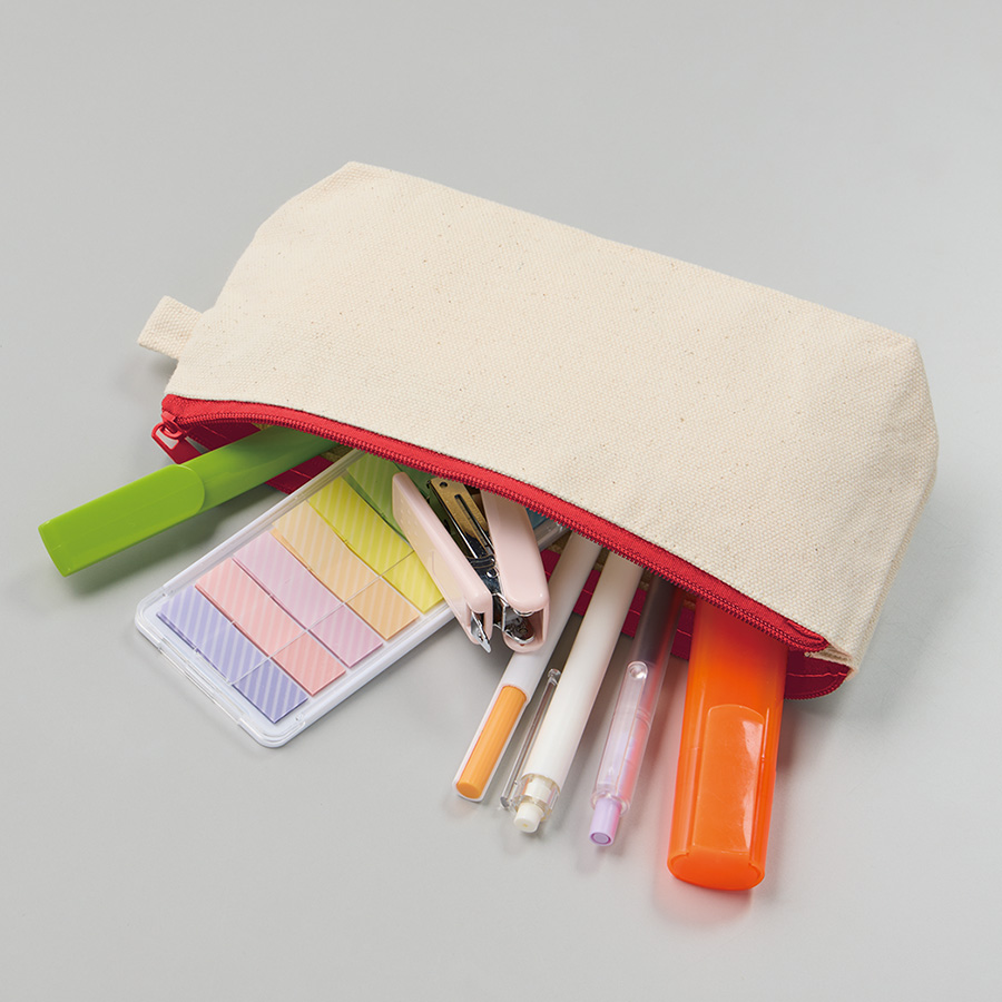 カラフルなファスナーがポイントのロングタイプ舟形ポーチです。