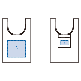 シルク・パッド印刷範囲 | 表・裏/W170×H160(mm) ポケット/W70×H45(mm) ※生地の特性上、シルク印刷をすると格子の柄が浮き出たような仕上がりになります。 |