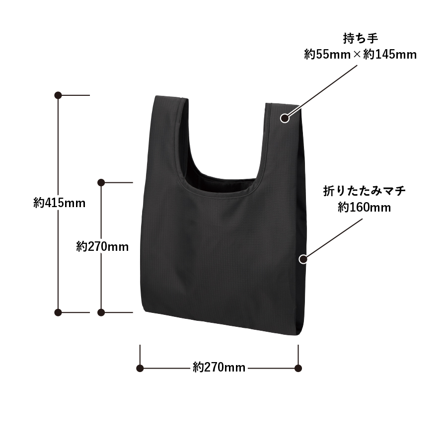 本体サイズ | 本体/約W270×H270(持ち手含む415)(mm) 持ち手/約W55×H145(mm) 折りたたみマチ/約160(mm) |