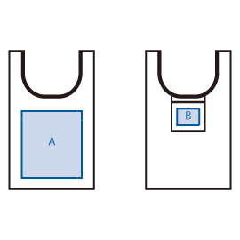 シルク・パッド印刷範囲 | 表・裏/W250×H200(mm) ポケット/W100×H75(mm) ※生地の特性上、シルク印刷をすると格子の柄が浮き出たような仕上がりになります。 |
