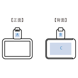 | シルク・パッド印刷範囲 | 正面A/W15×H15(mm) 背面B/W12×H15(mm) 背面C/70×H40(mm) |