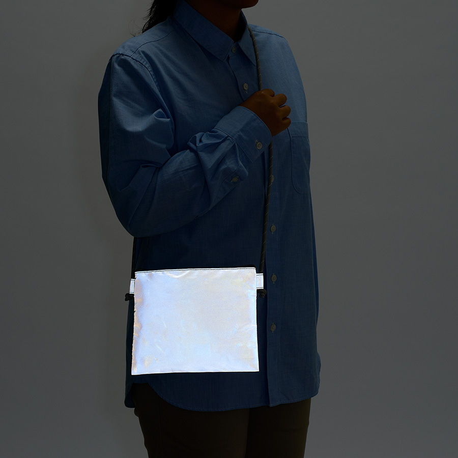 暗闇で光るリフレクターサコッシュです。