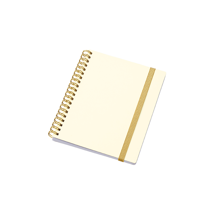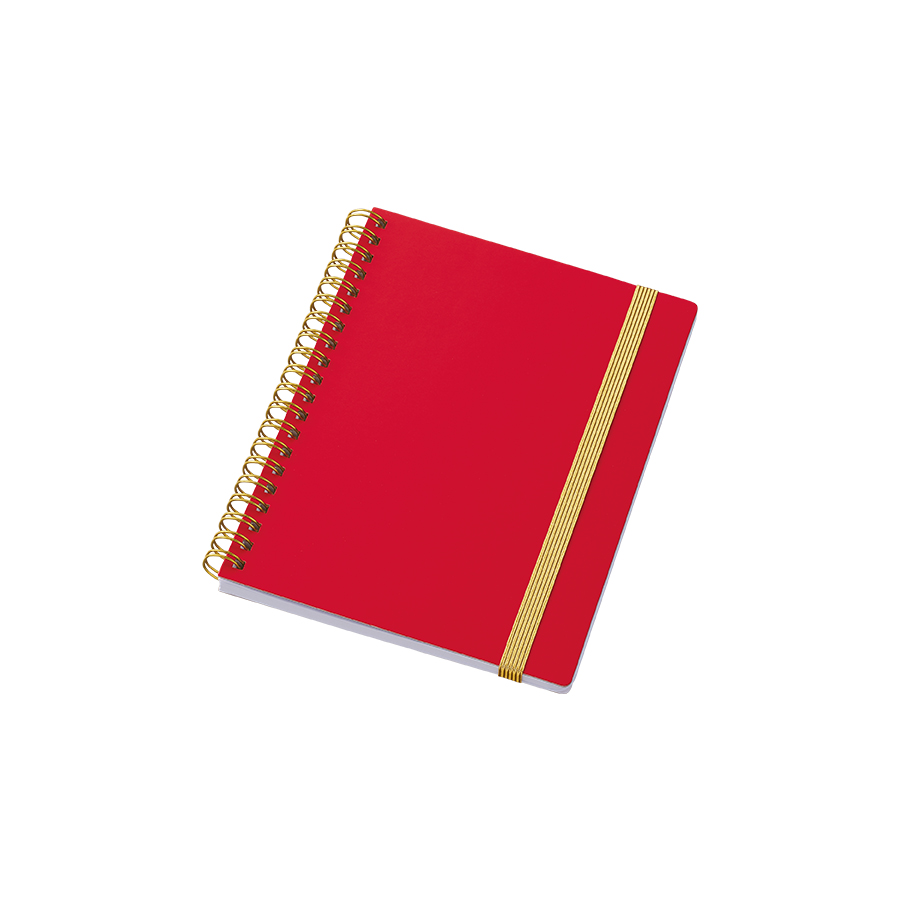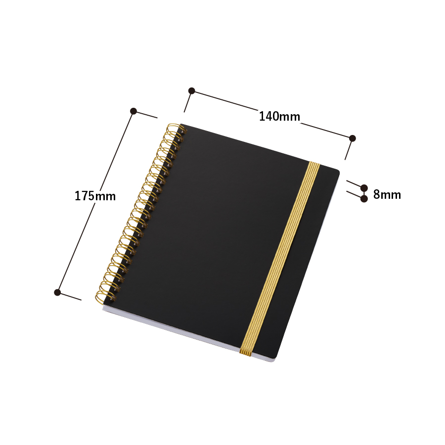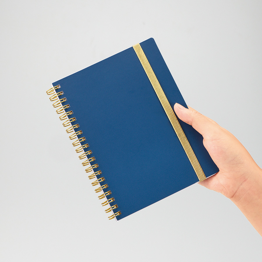 ゴールドのリングとゴムがアクセントの高級感のあるハンディノートです。