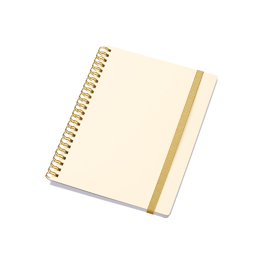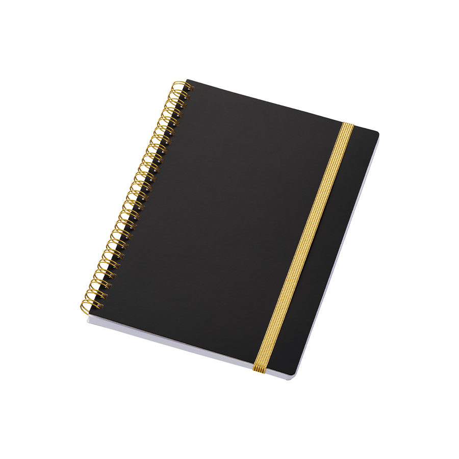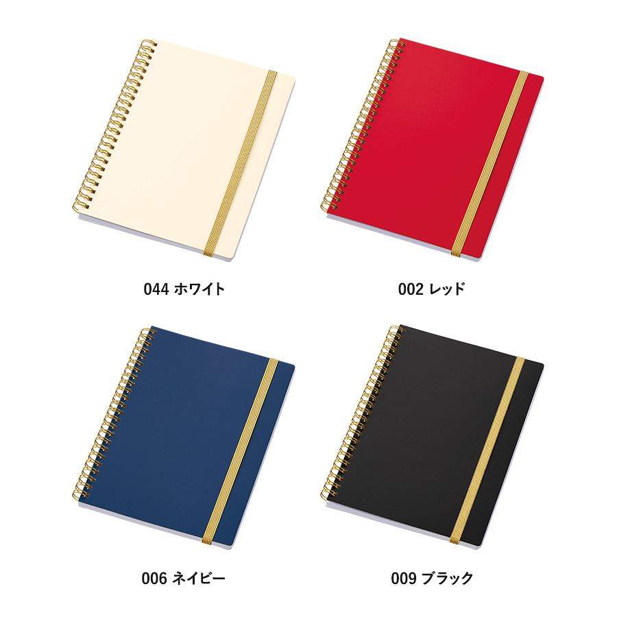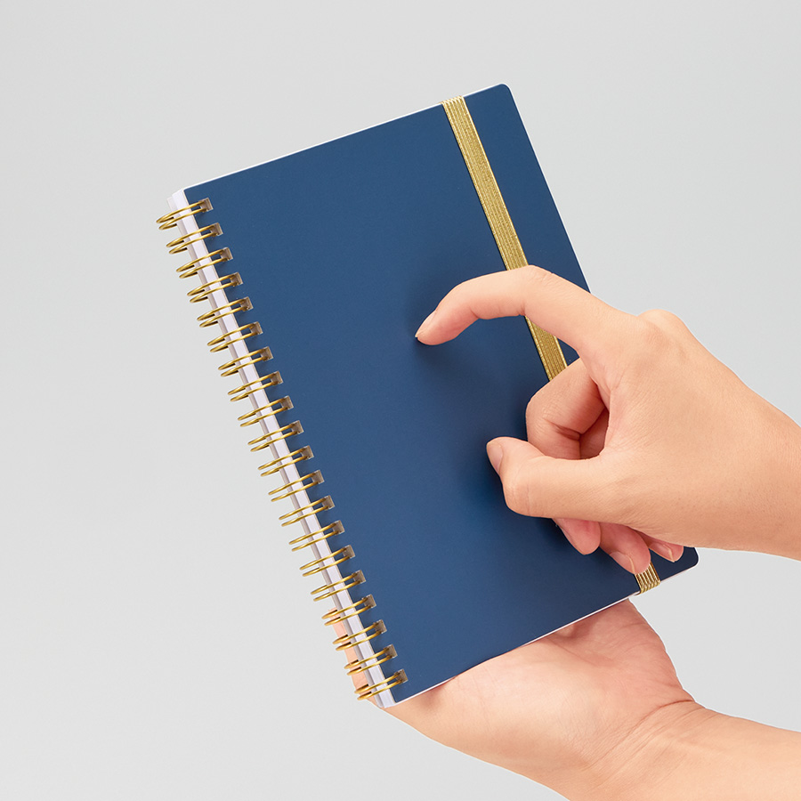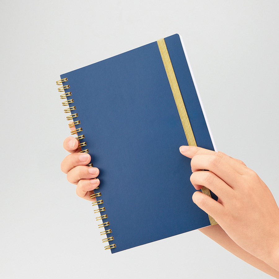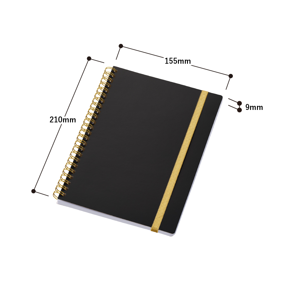 ゴールドのリングとゴムがアクセントの高級感のあるA5ノートです。