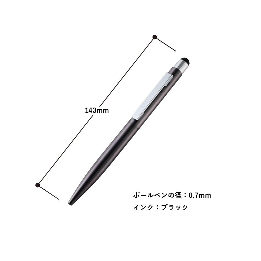 程よい重量感とステンレスならではの色味で高級感のあるタッチペン付きメタルボールペンです。