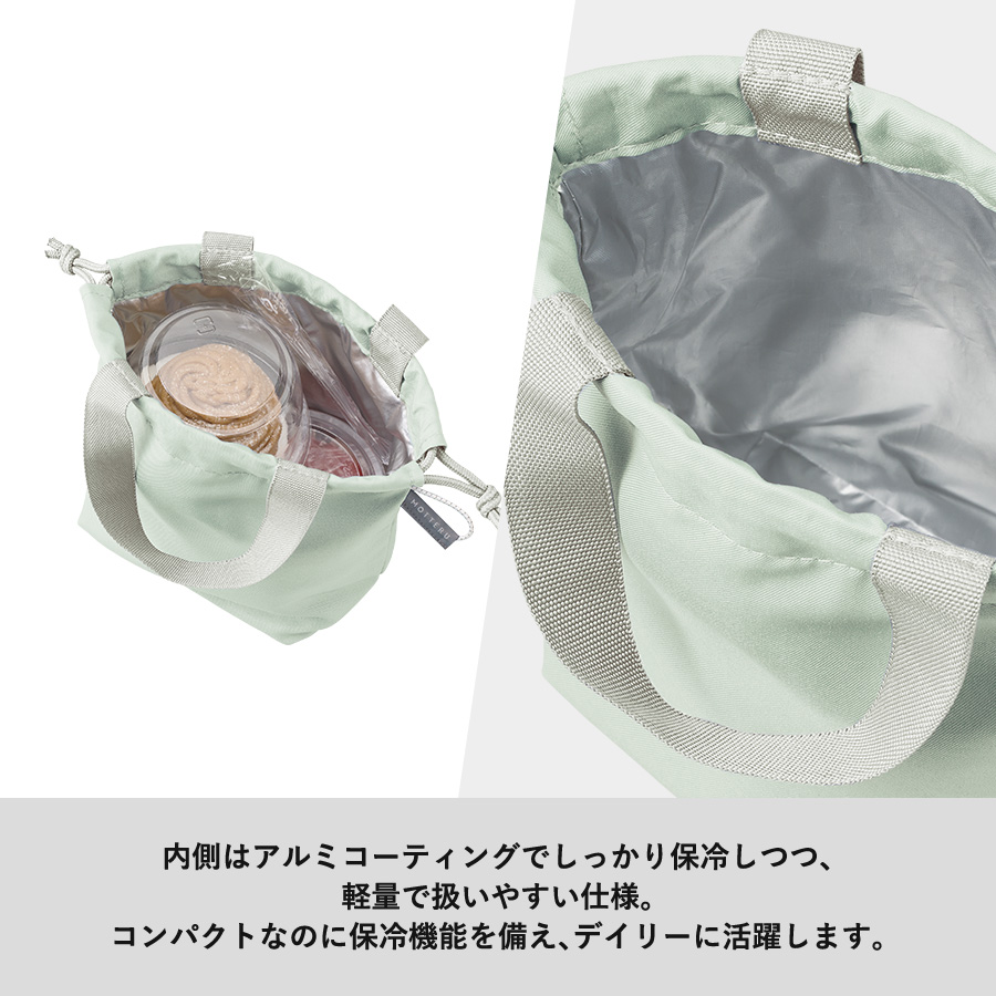 小さめサイズの保冷巾着バッグです。