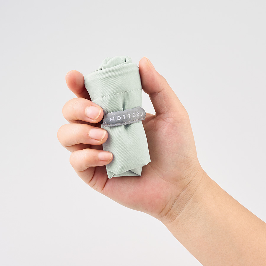 サイドのゴムでまとめれば、手のひらサイズまで小さくなるので持ち歩きにも便利です。