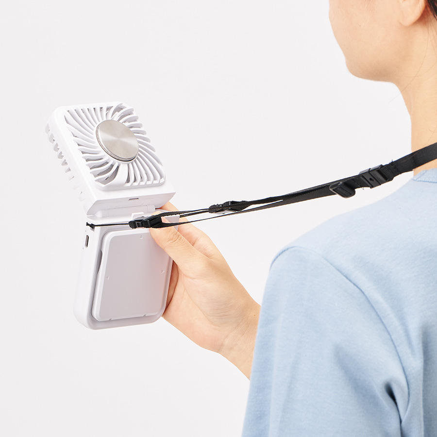 またネックストラップもついているため、首から下げてもお使いいただけます。
