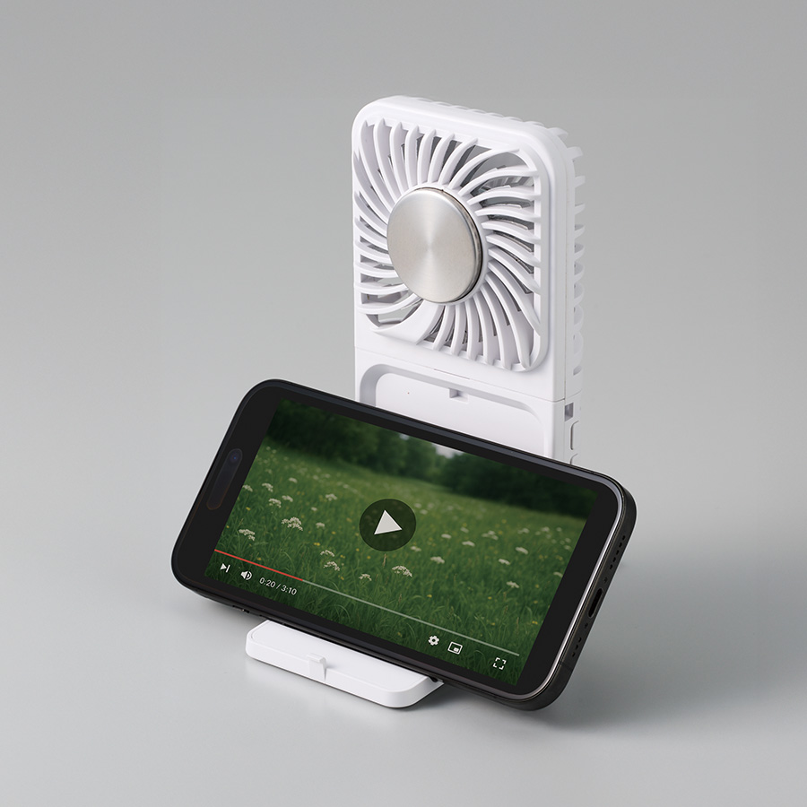 スマホスタンドにもなる便利なハンディファンです。