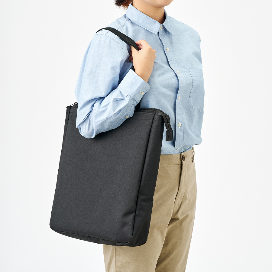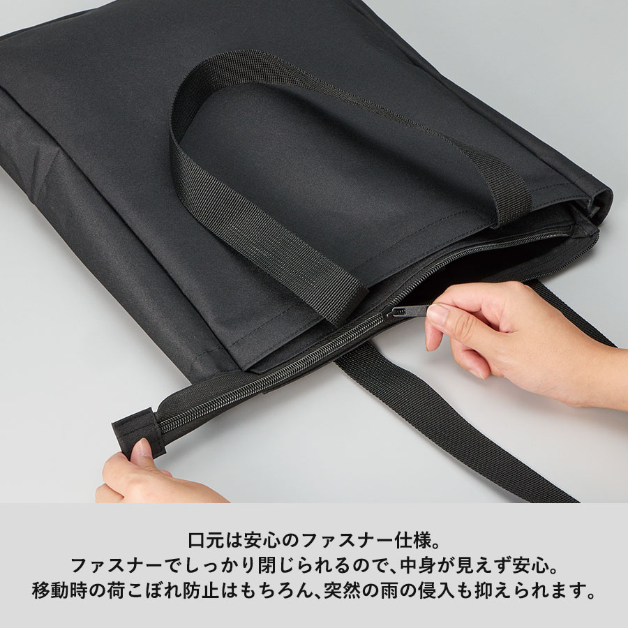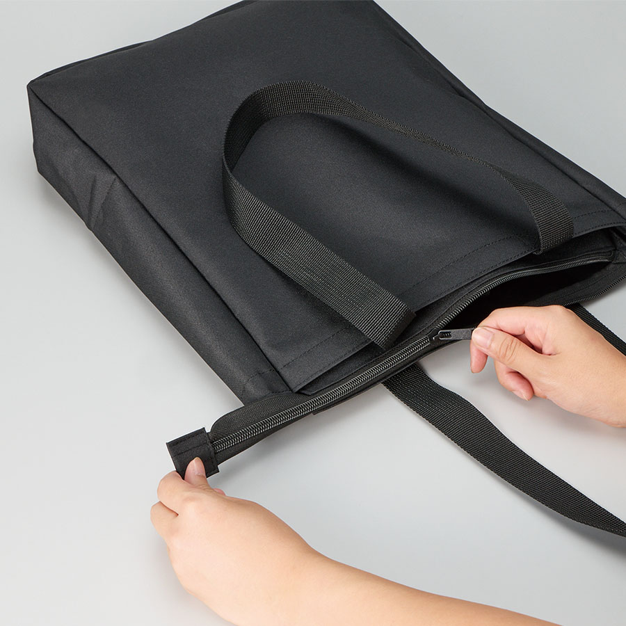 ノートPCを入れて持ち運べるファスナー付きトートバッグです。