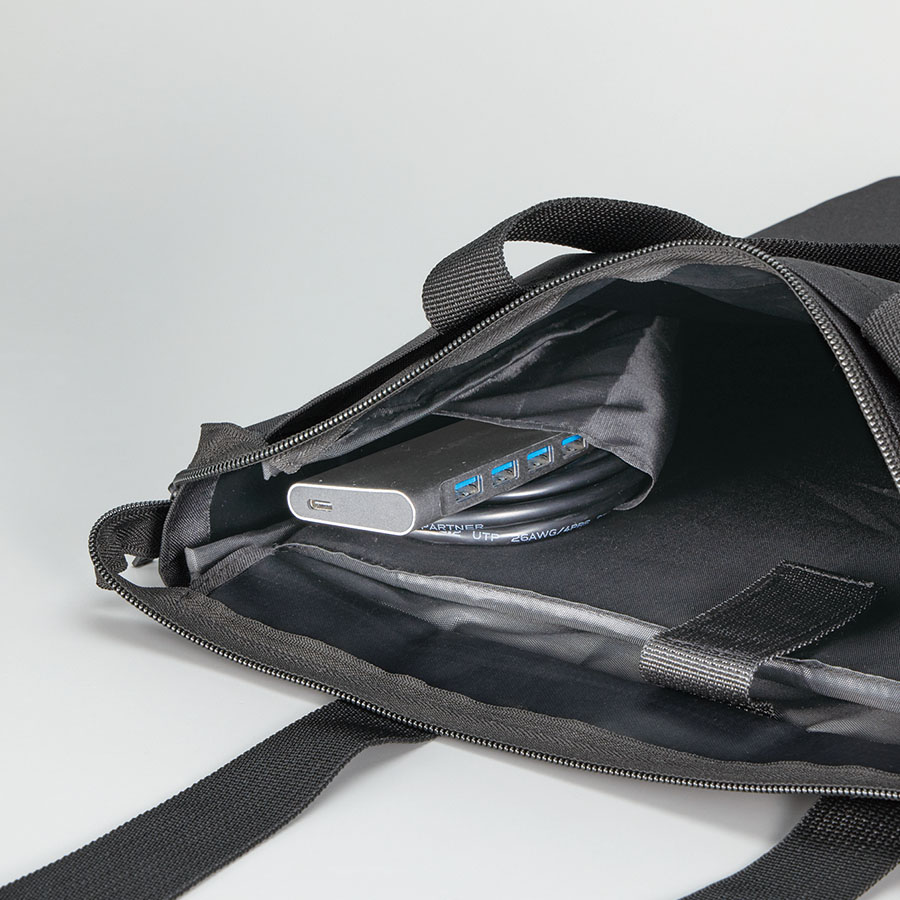 PCだけではなく、資料なども入れることができるため外で仕事をする際や、