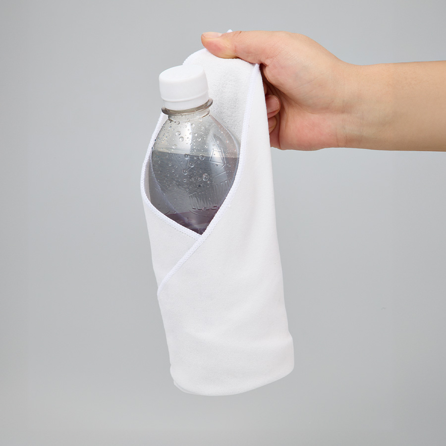 タオル全面が保冷保温効果付き!包むだけでピタットくっつく不思議なタオルです。