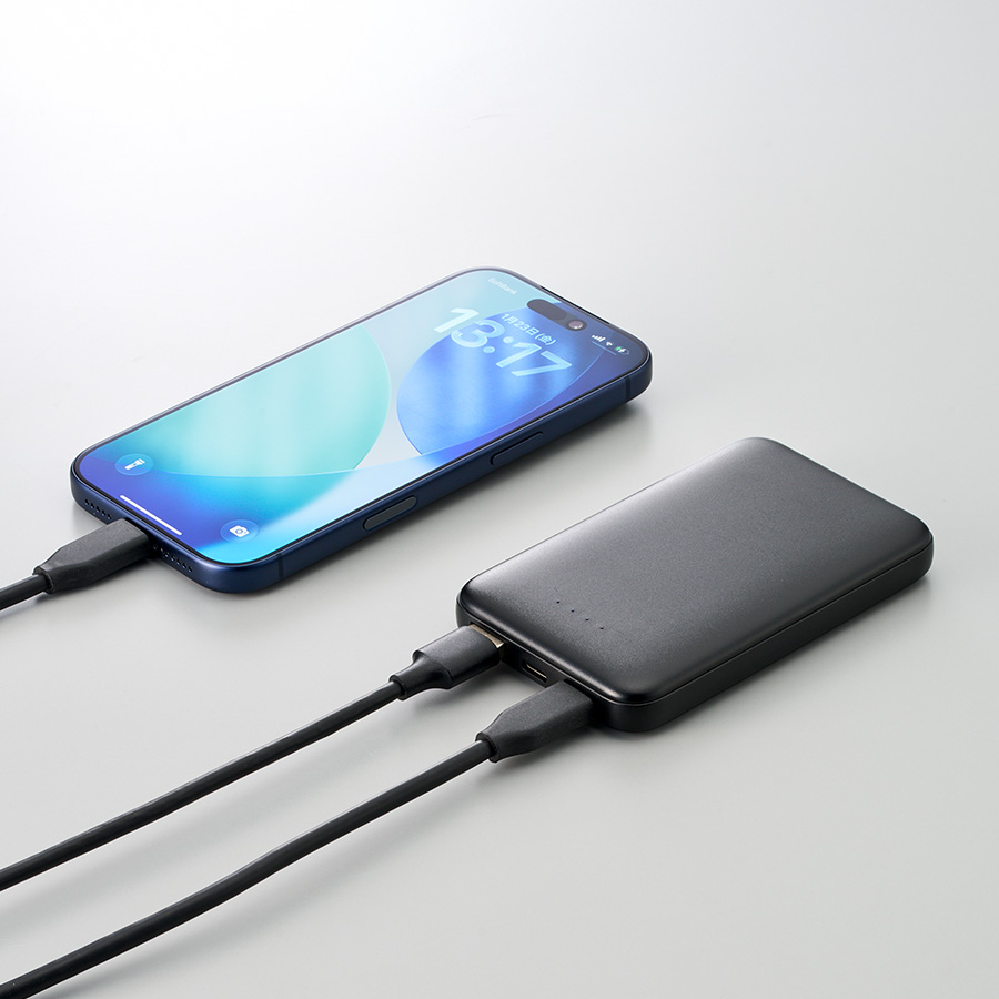 リン酸鉄を使用した、発火リスクの少ないモバイルチャージャーです。