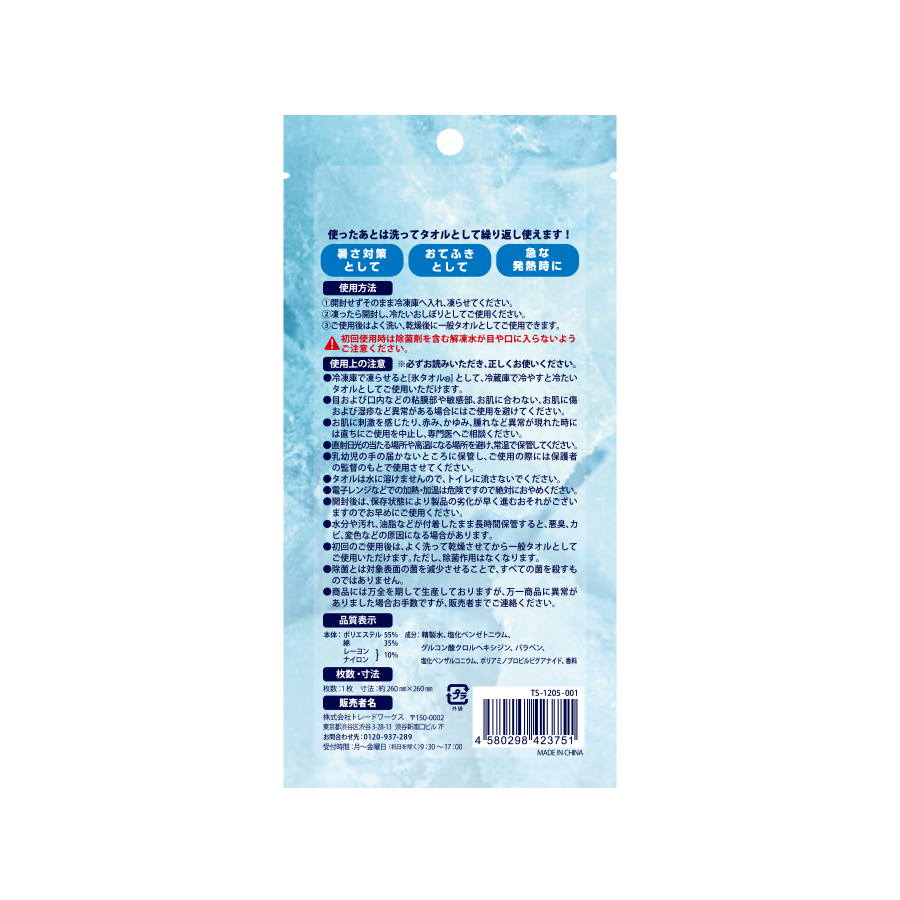 冷凍庫に入れればひんやりタオルに早変わり!夏の猛暑におすすめの氷タオルです。