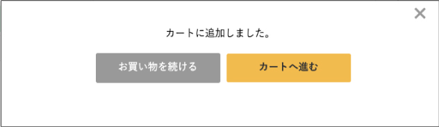 商品がカートに追加されると、下記お知らせが表示されますのでお買い物を続ける場合は「お買い物を続ける」ボタン